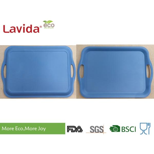 Quality Pinic BBQ Disposable Latest Design Bamboo fibre Tray with carring side handles Navy Blue Natural Plant Fibre Tray Set for sale